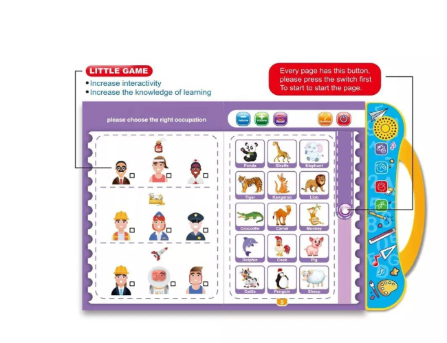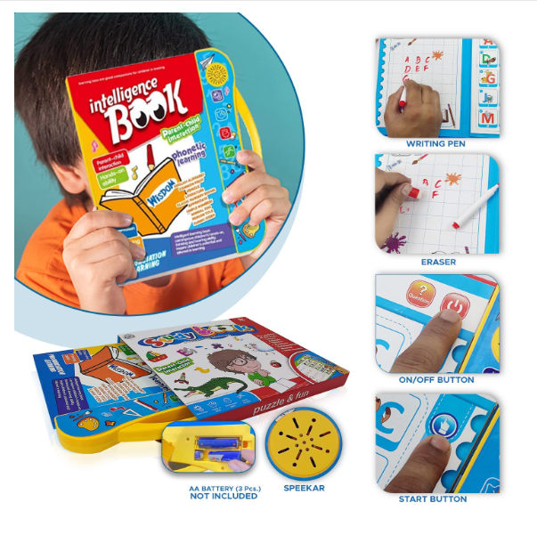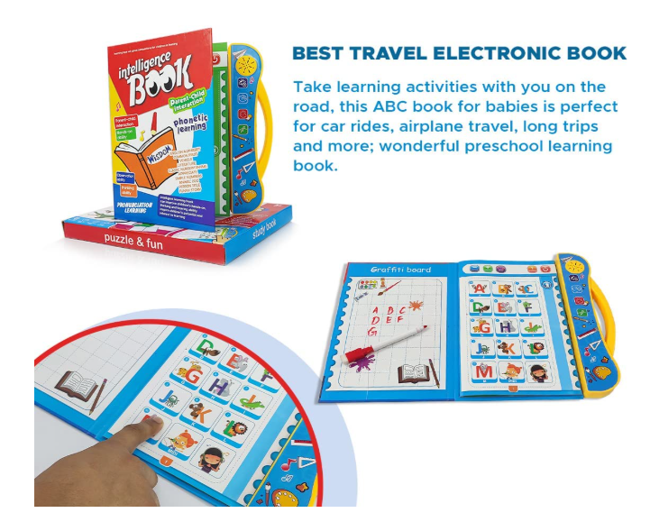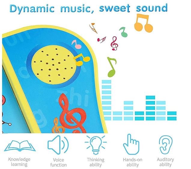 - 🎵 Interactive Audio Learning – Engage your child with a dynamic musical book for kids that teaches English letters, words, numbers, shapes, and animal phonetics. Touch-sensitive pages play sounds, making learning fun and immersive.